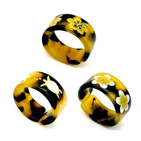 3 pezzi da donna set di anelli con guscio di tartaruga classico stile da spiaggia hawaii Pacifico con gioielli stampati a fiori plumeria